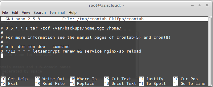 Kemudian kita akan diminta memasukan sebuah perintah ke cron untuk memperbarui SSL Certificate. Cukup copy dan masukan perintah tersebut lewat perintah crontab -e.