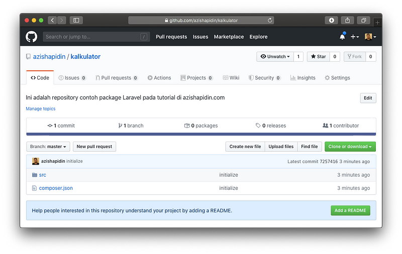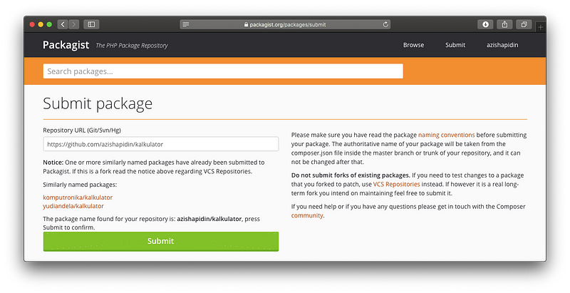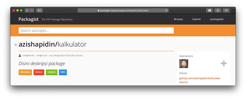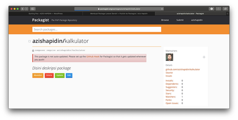 Sampai disini harusnya package sudah berhasil dipublish di Packagist.