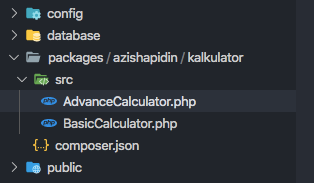 Sebagai sedikit bocoran, AzisHapidin\Kalkulator\ diatas akan menjadi namespace untuk package yang kita buat, jadi nanti ketika kita ingin import sebuah kelas pada package bisa dengan kode seperti ini: