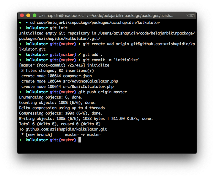 Selanjutnya kita harus push package yang kita buat ke repository tadi, pada direktori package (dalam kasus ini adalah direktori kalkulator) jalankan perintah dibawah: