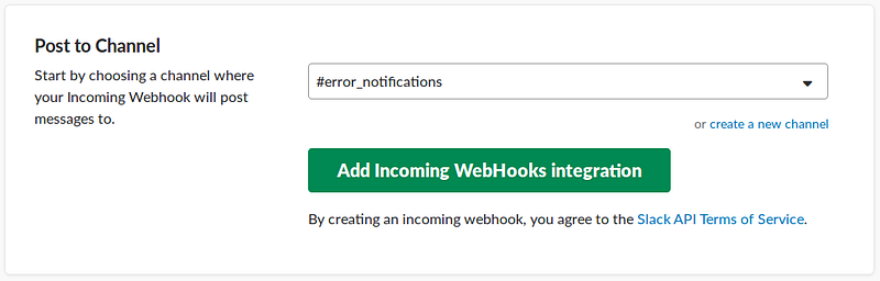 Cari bagian Post to Channel kemudian pilih nama channel yang sudah kita buat tadi dan klik Add Incoming WebHooks integration.